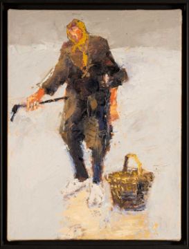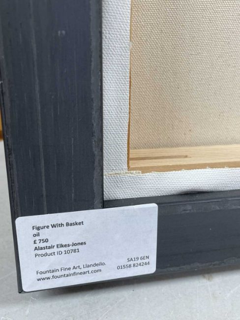 ALASTAIR ELKES-JONES (Welsh 1942-2024) oil on canvas - entitled verso, 'Figure with Basket' on Fountain Fine Art Gallery label, 40 x 30cms