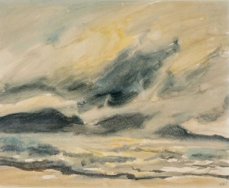 SIR KYFFIN WILLIAMS RA (Welsh 1918-2006) watercolour - entitled verso 'No. 3, Sea at Llanddwyn', signed with initials, 39 x 48cms