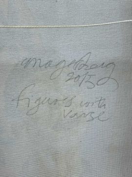 MEIRION GINSBERG (Welsh b.1985) oil on canvas - entitled verso, 'Figures with Vase' on Martin Tinney Gallery label, signed and dated verso 2015, 40 x 30cms
