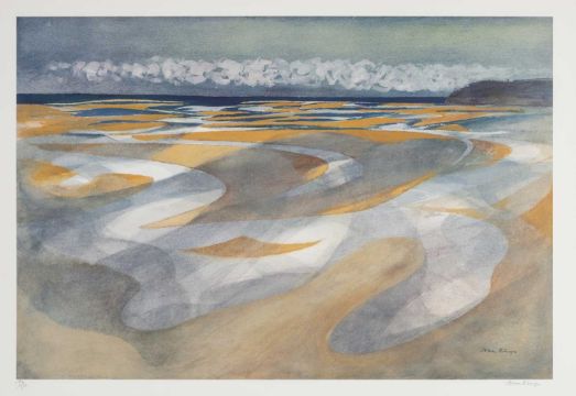 JOHN ELWYN (Welsh 1916-1997) limited edition (196/300) lithograph - Laugharne Estuary from Dylan Thomas' Boathouse, signed, 35 x 51cms