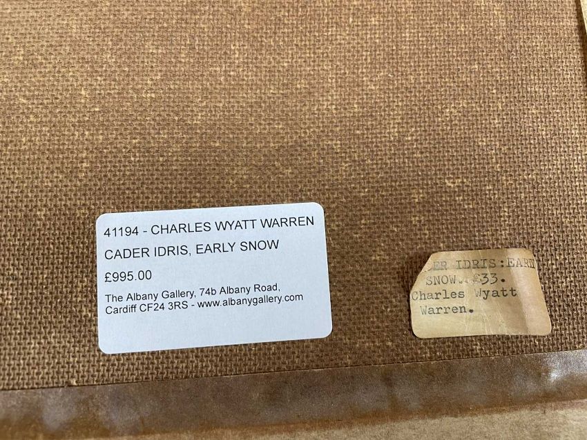 CHARLES WYATT WARREN (Welsh 1908-1993) oil on board - entitled verso, 'Cader Idris, Early Snow' on Albany Gallery label, signed, 24 x 54cms