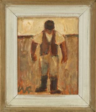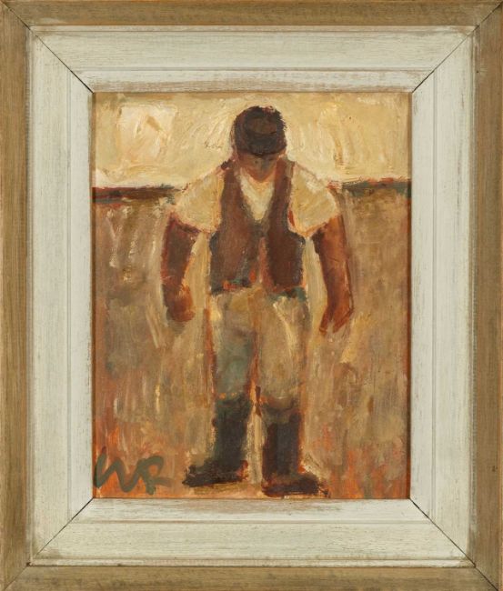 WILL ROBERTS (Welsh 1907-2000) oil on board - entitled verso, 'Man in the Sun', signed with initials, signed and dated verso '73, 24 x 19cms
