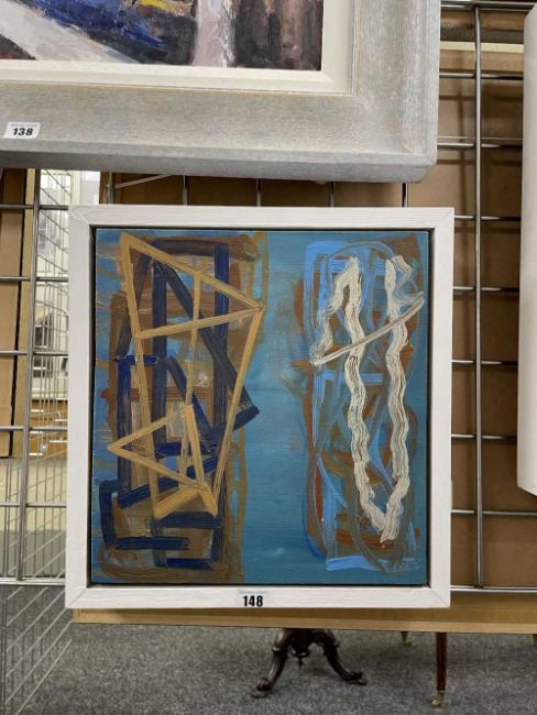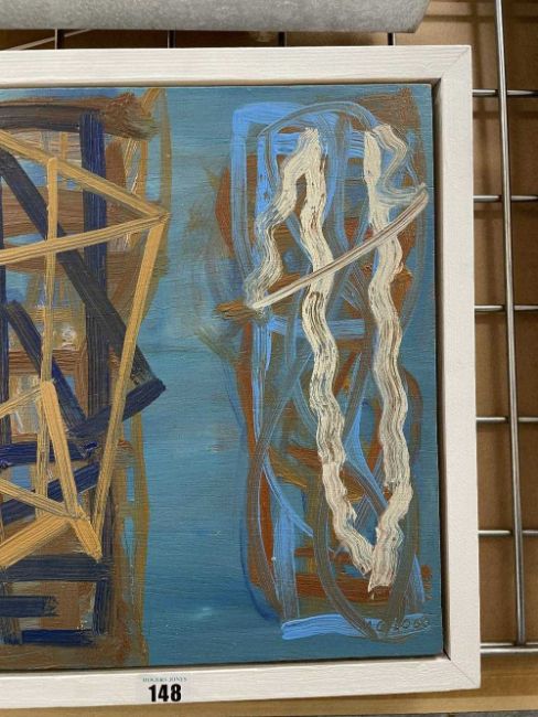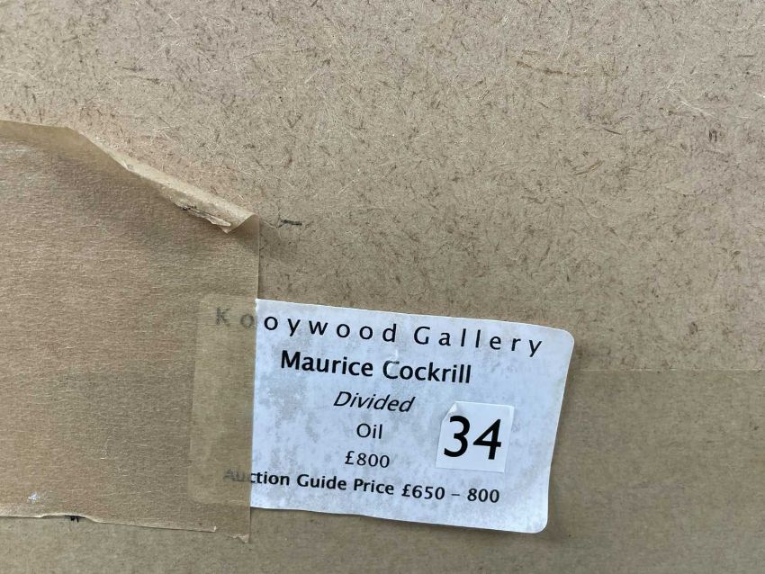 MAURICE COCKRILL (1936-2013) oil on panel - entitled verso, 'Divided' on Kooywood Gallery label, signed with initials, dated 2000, 32 x 30cms