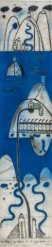 IWAN BALA (Welsh b.1956) mixed media on fabric - entitled verso, 'Hirlun I', signed and dated '95, 37 x 172cms
