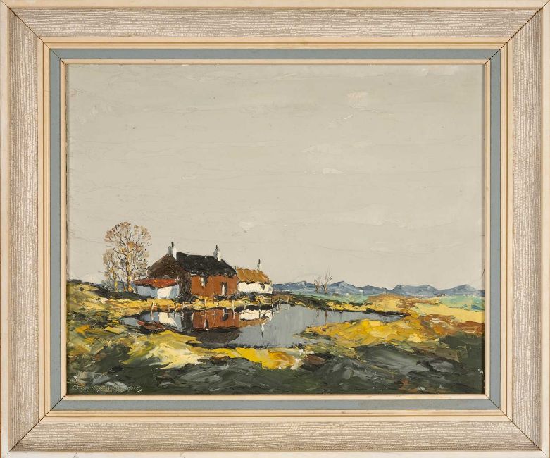 CHARLES WYATT WARREN (Welsh 1908-1993) oil on board - entitled verso, 'Farm Near Snowdon', signed, 38.5 x 49cms