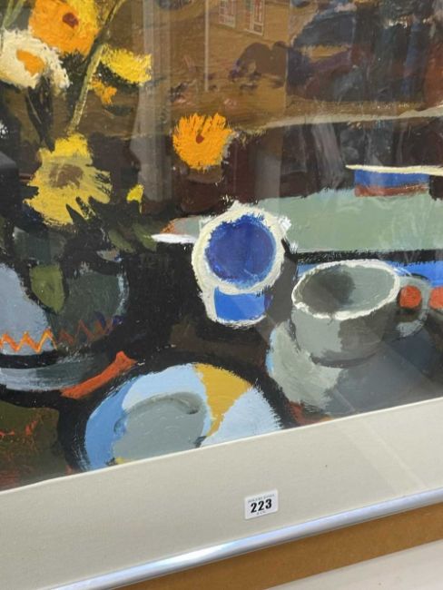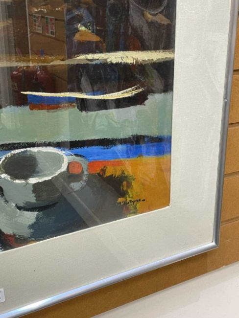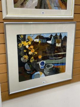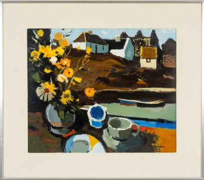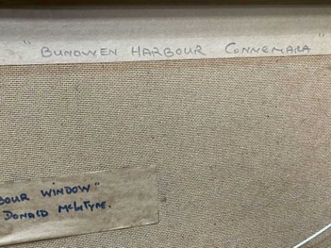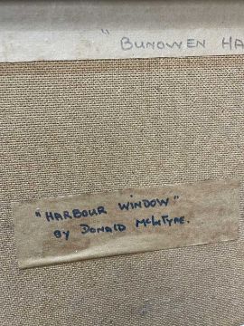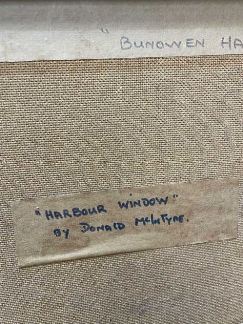 DONALD MCINTYRE (1923-2009) oil / acrylic - entitled verso 'Harbour Window', fully signed, 50 x 61cms