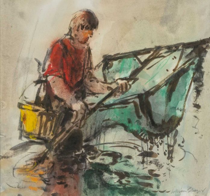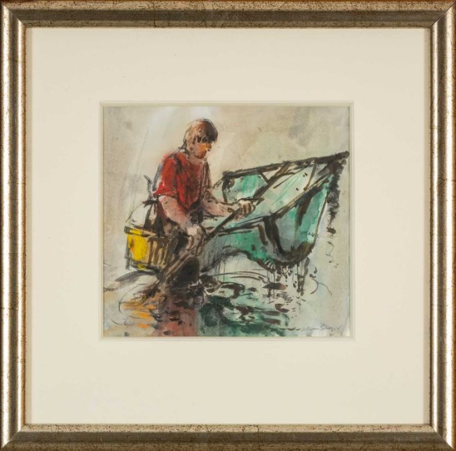 WILLIAM SELWYN (Welsh b.1933) watercolour - entitled verso, 'Young Shrimper' on Albany Gallery label, signed, 26 x 28cms