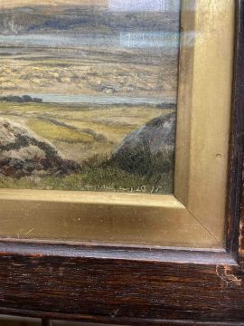 JOHN BRETT (1831-1902) oil on panel (a pair) - entitled verso, 'Menai Straits from Anglesey' and the other 'Anglesey', both signed and dated '75, both the same size 17 x 35cms