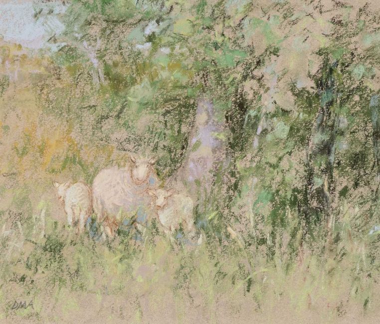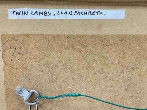 DIANA ARMFIELD (b.1920) pastel on paper - entitled verso, 'Twin Lambs, Llanfachreth' on Albany Gallery label, signed with initials, 19 x 22cms