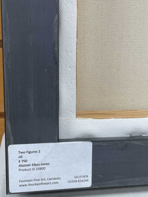 ALASTAIR ELKES-JONES (Welsh 1942-2024) oil on canvas - entitled verso, 'Two Figures 2' on Fountain Fine Art Gallery label, 40 x 30cms