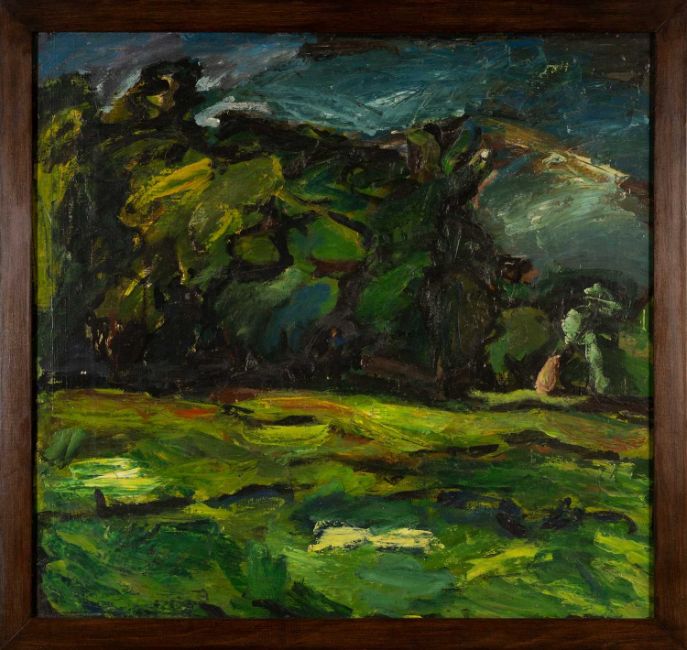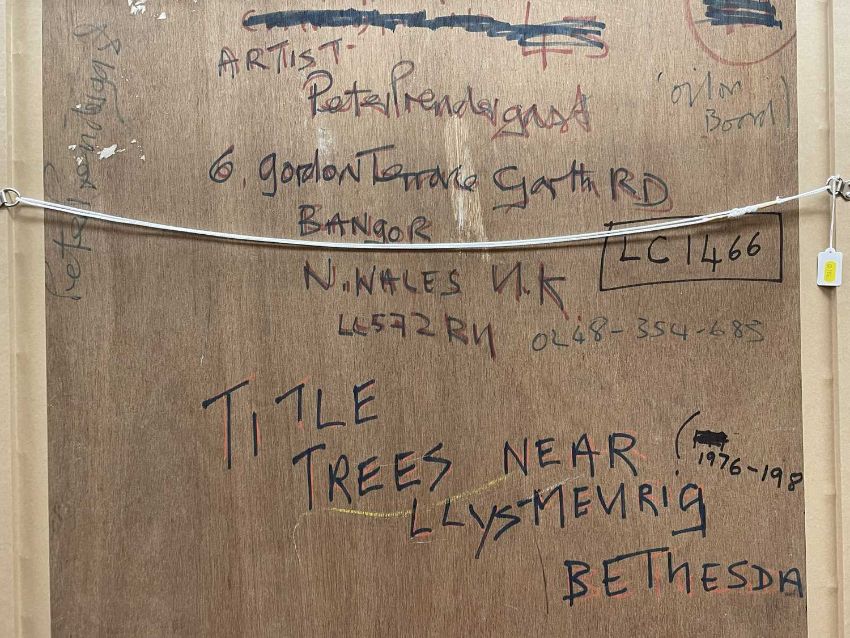 PETER PRENDERGAST (Welsh 1946-2007) oil on board - entitled verso, 'Trees Near Llys Meurig, Bethesda', signed and dated verso 1986-1990, 91 x 96cms