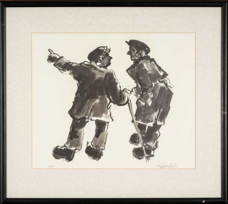 SIR KYFFIN WILLIAMS RA (Welsh 1918-2006) limited edition (artists proof) lithograph - two famers in conversation, fully signed in pencil, 39 x 47cms