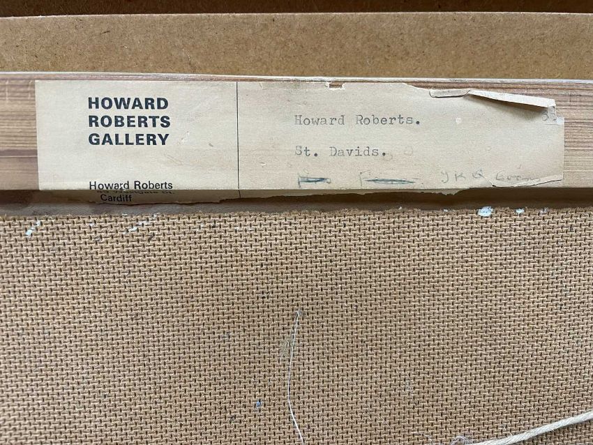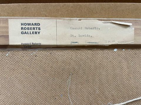 HOWARD ROBERTS (Welsh 1922-2001) oil on board - entitled verso, 'St Davids' on Howard Roberts Gallery label, circa 1960s, 21 x 41cms