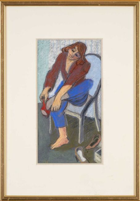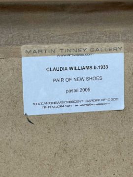 CLAUDIA WILLIAMS (b.1933) pastel - entitled verso, 'Pair of New Shoes' on Martin Tinney Gallery label, signed with initials, dated verso 2005, 29 x 15cms