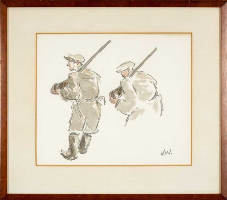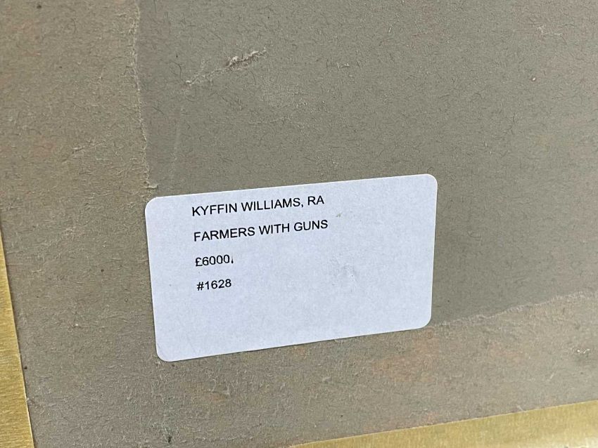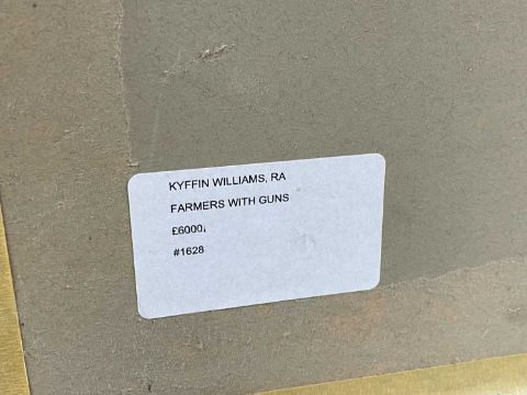SIR KYFFIN WILLIAMS RA (Welsh 1918-2006) watercolour and pencil - entitled verso, 'Farmers with Guns', signed with initials, 27 x 32cms