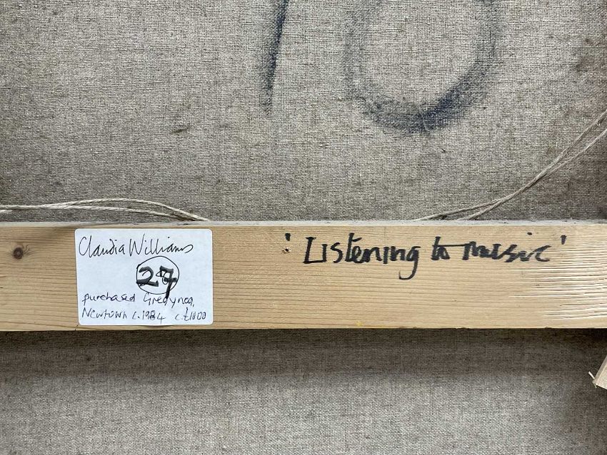 CLAUDIA WILLIAMS (1933-2024) oil on canvas - entitled verso, 'Listening to Music', signed and signed and dated '92 verso, 54 x 45cms