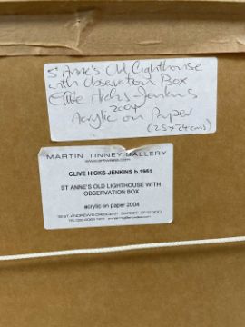 CLIVE HICKS-JENKINS (Welsh b.1951) acrylic on paper - entitled verso, 'St Anne's Old Lighthouse with Observation Box' on Martin Tinney Gallery label, signed and dated 2004 verso, 25 x 25cms