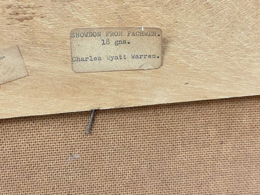 CHARLES WYATT WARREN (Welsh 1908-1993) oil on board - entitled verso 'Snowdon from Fachwen', signed, 23.5 x 54cms