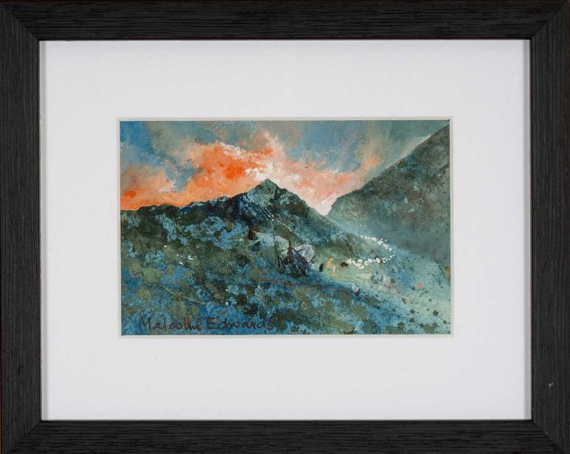 MALCOLM EDWARDS (Welsh b.1934) watercolour - entitled verso, 'Ted's Snowdonia View', signed, 14.5 x 9.5cms