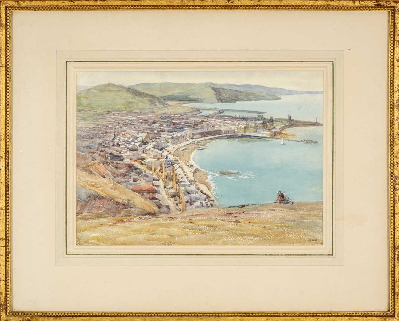 A E MARTIN (fl.1920s) watercolour - Aberystwyth from Constitution Hill, entitled verso, 'Aberystwyth', signed with initials, 27 x 38cms