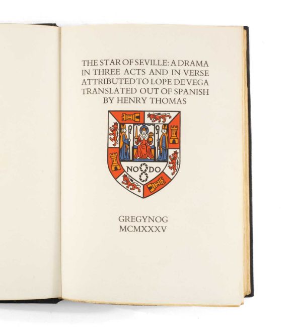 GWASG GREGYNOG PRESS: THE STAR OF SEVILLE 1935 limited edition (154/175) printed and bound at the Press, Newtown, Montgomeryshire, binding design by Blair Hughes-Stanton, bound by George Fisher