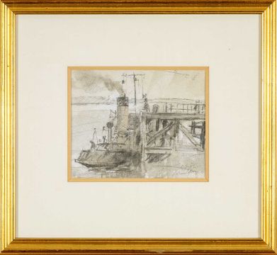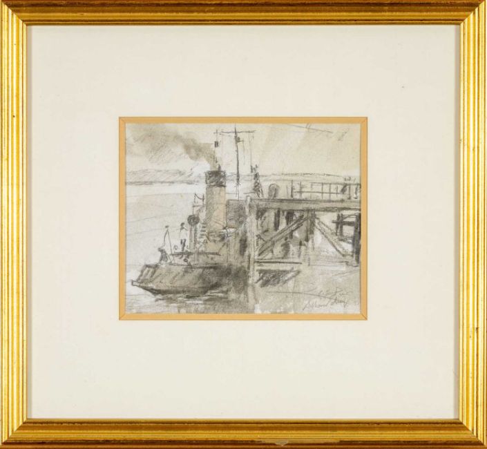 WILLIAM SELWYN (Welsh b.1933) mixed media - entitled verso, 'Steamer by the Sea' on Albany Gallery label, signed, 16 x 20cms