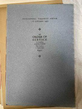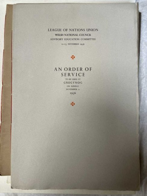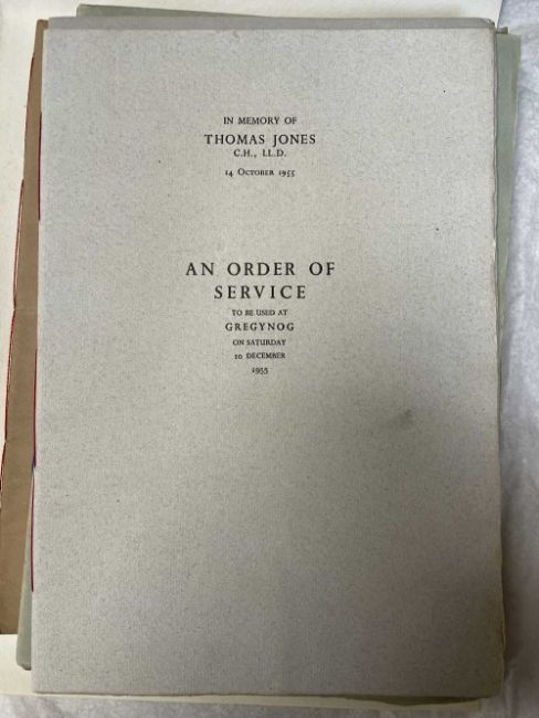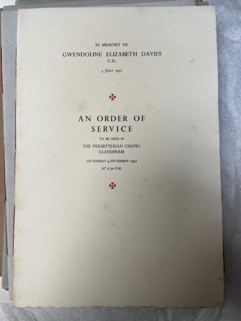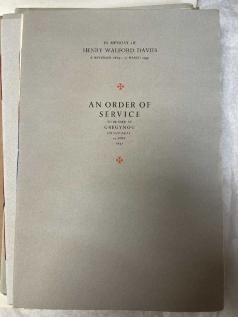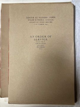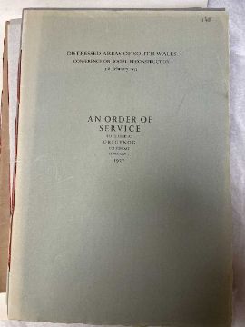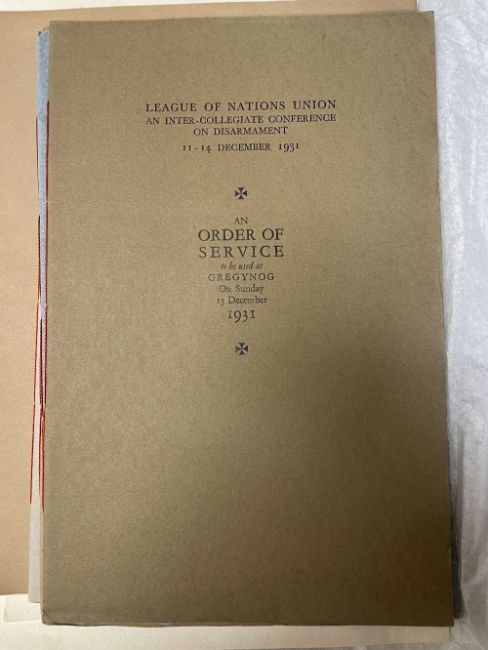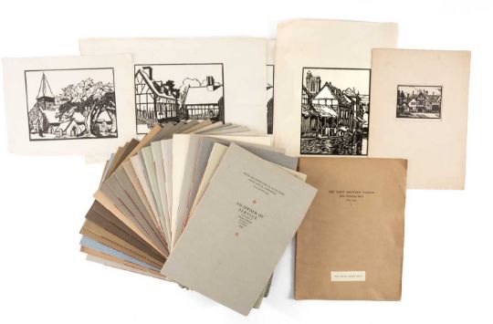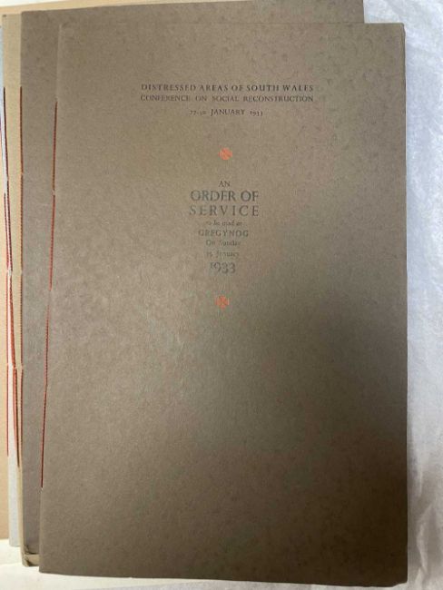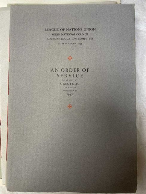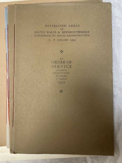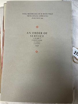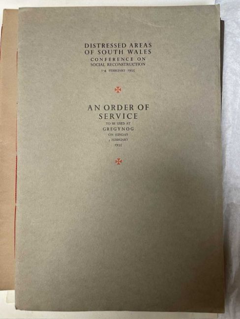 GWASG GREGYNOG PRESS: a collection of Gregynog Order of Service programmes including Distressed Areas of South Wales 1937, Social Reconstruction in South Wales, Tenth Annual Conference 1939, Girls Club in Wales 1939, League of Nations Union 1937 and many Funeral Order of Service booklets, twenty five in total, together with five unsigned woodblock prints (qty)