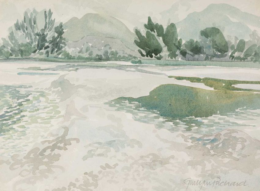 GWILYM PRICHARD (Welsh 1931-2015) seven preliminary watercolours - landscapes, two signed, all similar sizes, 26 x 36cms