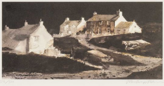 JOHN KNAPP-FISHER (1931-2015) limited edition (316/500) print - Abereiddy Cottages, fully signed in pencil, dated 1997, 17 x 35cms