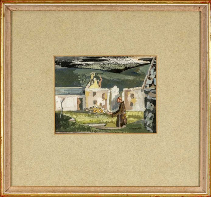 JOHN THOMAS PARRY (1853-1913) watercolours (a pair) - entitled verso, 'Monk in a Landscape', 10 x 13cms, and another with the National Library of Wales stamp verso, both signed verso, 12 x 14cms