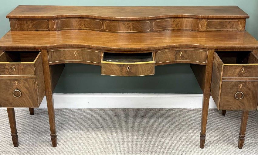 REGENCY STYLE BUFFET SIDEBOARD, a fine example with cellarette drawers on tapered supports, 103 (h) x 192 (w) x 64cms (d)