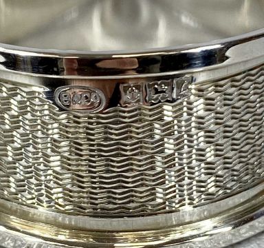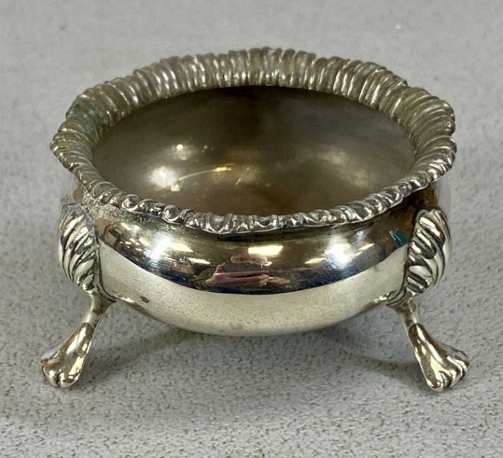 ASSORTED SMALL SILVER COLLECTABLES, including circular open salt on pad feet and four serviette rings, including cased pair, 2.75ozt gross