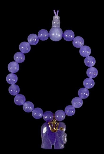 LAVENDER JADEITE BEAD BRACELET, with elephant charm