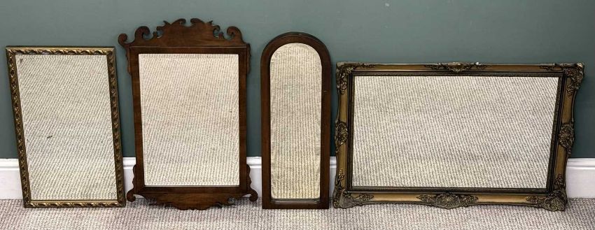 FOUR VINTAGE MIRRORS, to include Georgian-style shaped mahogany frame, 72 x 44cms; rectangular gilt frame, etc. (4)