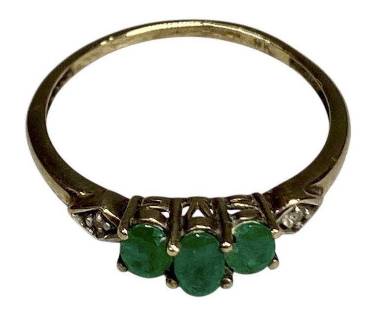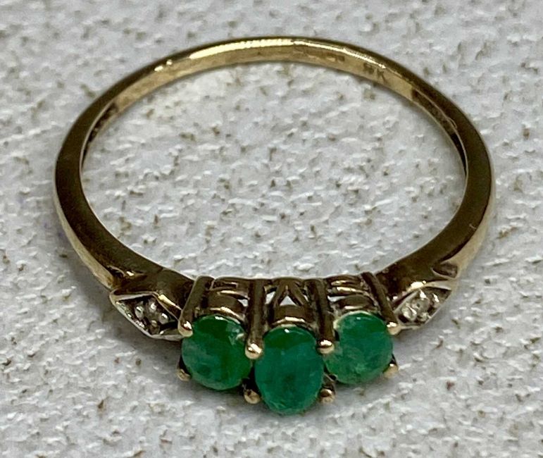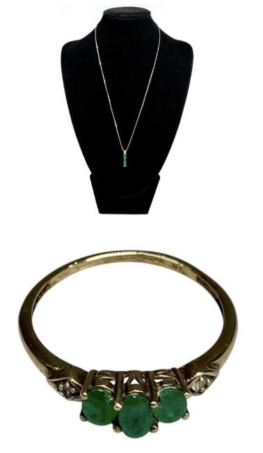 9CT GOLD PENDANT, CHAIN & RING, set with oval green stones, 4.2g gross