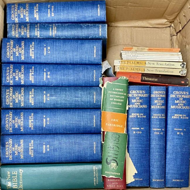 QUANTITY OF BOOKS, mainly art and music, contained in two boxes