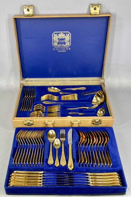 GERMAN CANTEEN OF GOLD-PLATED CUTLERY, The Royal Collection Solingen, 68 pieces, contained in attaché style case
