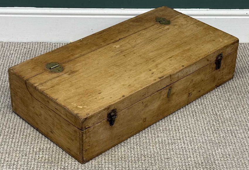 VINTAGE PINE TOOL CHEST, rectangular hinged lid, 18 (h) x 80 (w) x 40cms (d)
