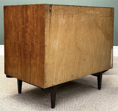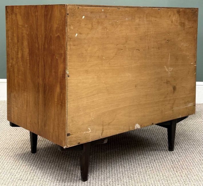 HEALS FIGURED TEAK THREE-DRAWER CHESTS, 68 (h) x 76 (w) x 47.5cms (d) (3)