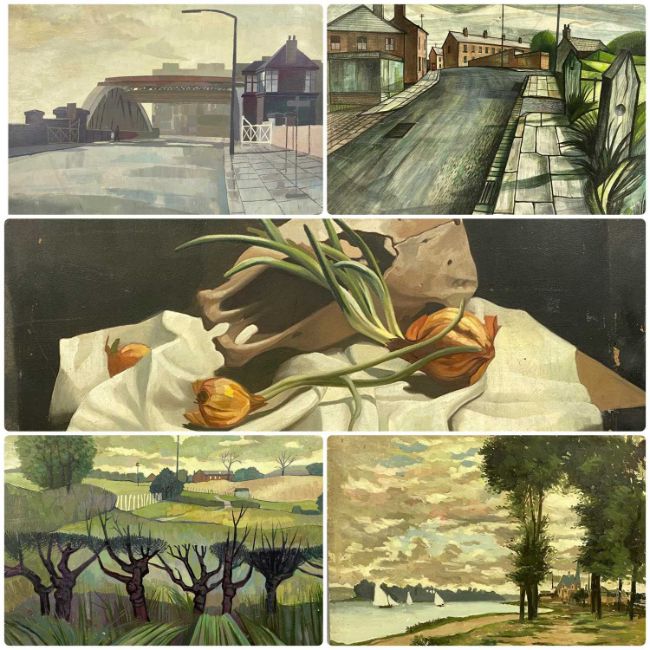 KENNETH HAROLD GRESTY (British, 1928-2002) five oils on board, including a still life and street scenes, all signed and untitled, 56 x 76.5cms the largest (5)