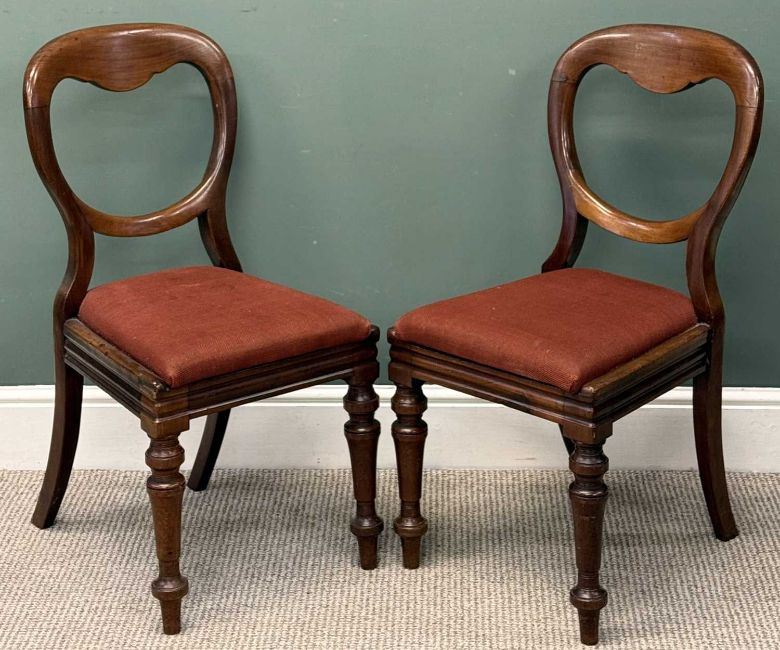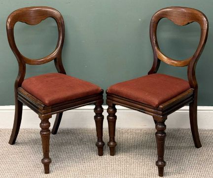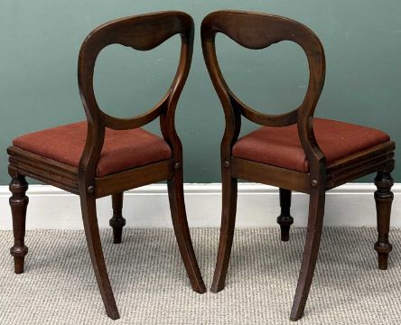 LARGE MAHOGANY DROP-LEAF DINING TABLE of rectangular shape, 72 (h) x 60/166 (w) x 121cms (d) and five mahogany balloon-back dining chairs, 87 (h) x 43 (w) x 40cms seat (d)