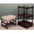 EARLY 20TH CENTURY THREE-SHELF MAHOGANY WHATNOT, 99 (h) x 57 (w) x 43cms (d); and an upholstered footstool with bobbin supports, 48 (h) x 53 (w) x 44cms (d)
