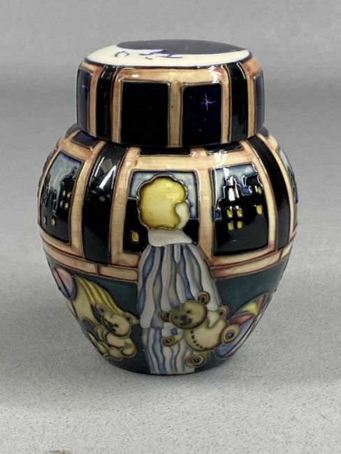 TWO MOORCROFT GINGER JARS & COVERS, Mistletoe and Wish Upon a Star patterns, 11cms (h)