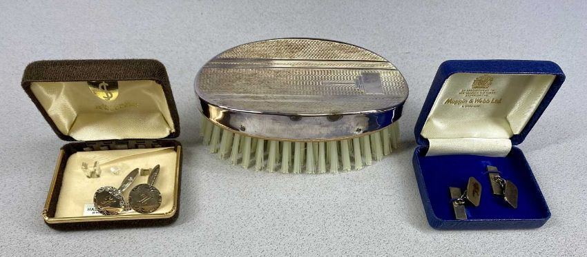 SILVER-BACKED HAIRBRUSH, and two pairs of silver cufflinks