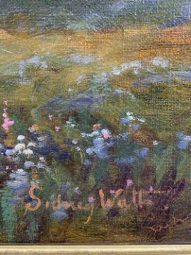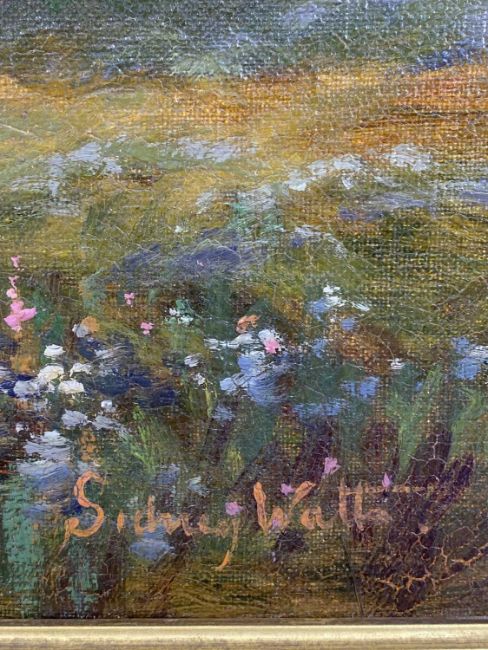 SIDNEY WATTS pair of oils on canvas - landscape with cottages and figures in foreground, and landscape with river and cattle in foreground, signed lower right, 40 x 60cms (2)