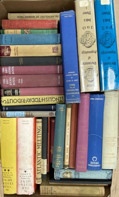 LARGE ASSORTMENT OF VINTAGE BOOKS, including art, language, poetry, ecclesiastical etc., contained within 7 boxes