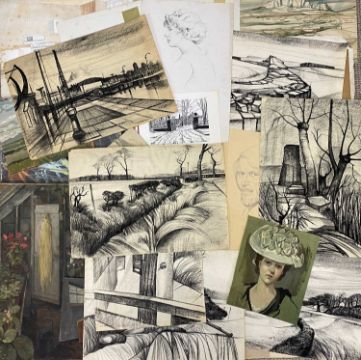 FROM THE STUDIO OF KENNETH HAROLD GRESTY (British, 1928-2002) portfolio of paintings, sketches, and other artworks, some signed by the artist