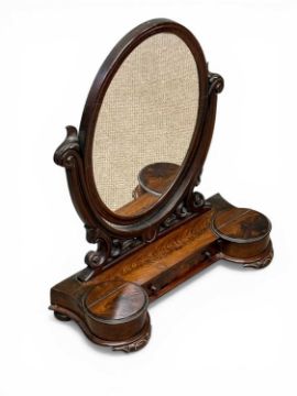 VICTORIAN FLAME MAHOGANY TOILET MIRROR, 83 (h) x 73 (w) x 30cms (d)