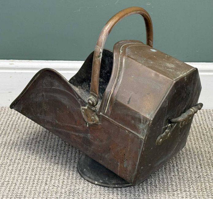 GOOD VINTAGE COPPER HELMET COAL SCUTTLE, 36 (h) x 27 (w) x 50cms (d)