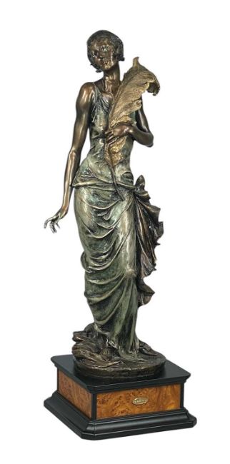GIUSEPPE ARMANI (Italian, (1935–2006) Art Nouveau style painted resin figure of a female holding a large feather, on painted composite and wood effect base, 74cms (h)
